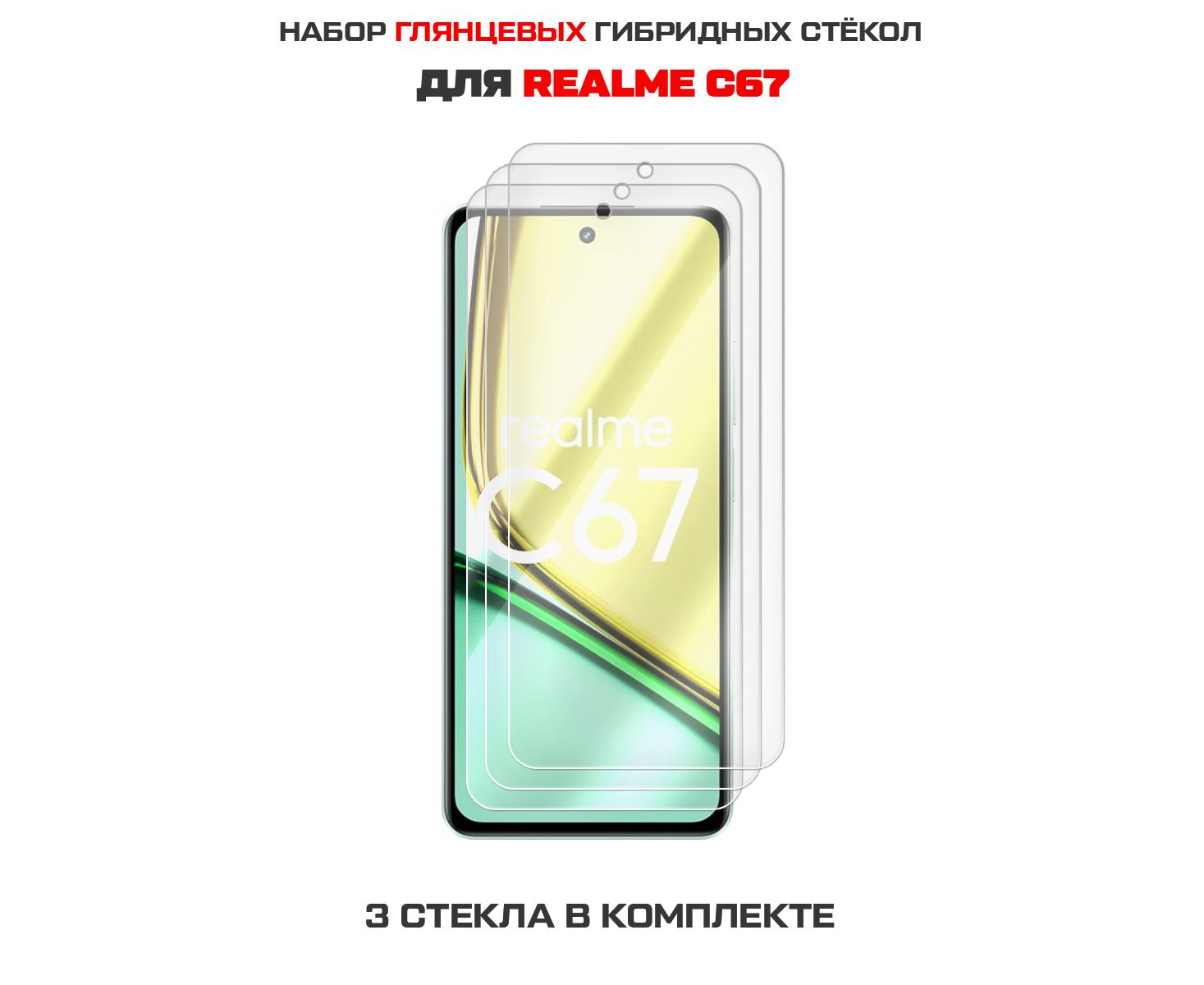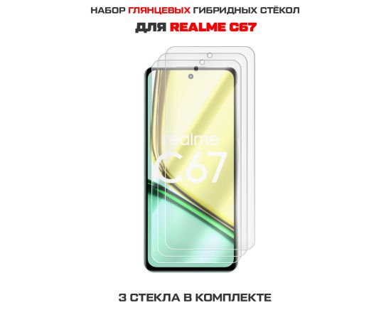 Комплект из 3-х защитных гибридных стекол Krutoff для Realme C67