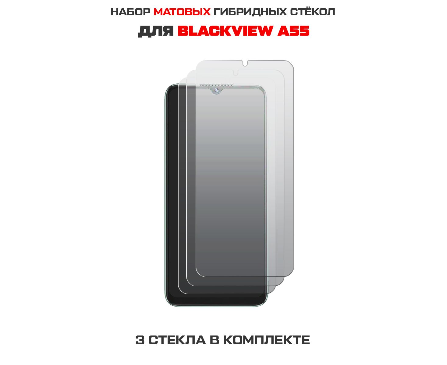 Комплект из 3-х защитных гибридных стекол МАТОВЫХ Krutoff для Blackview A55