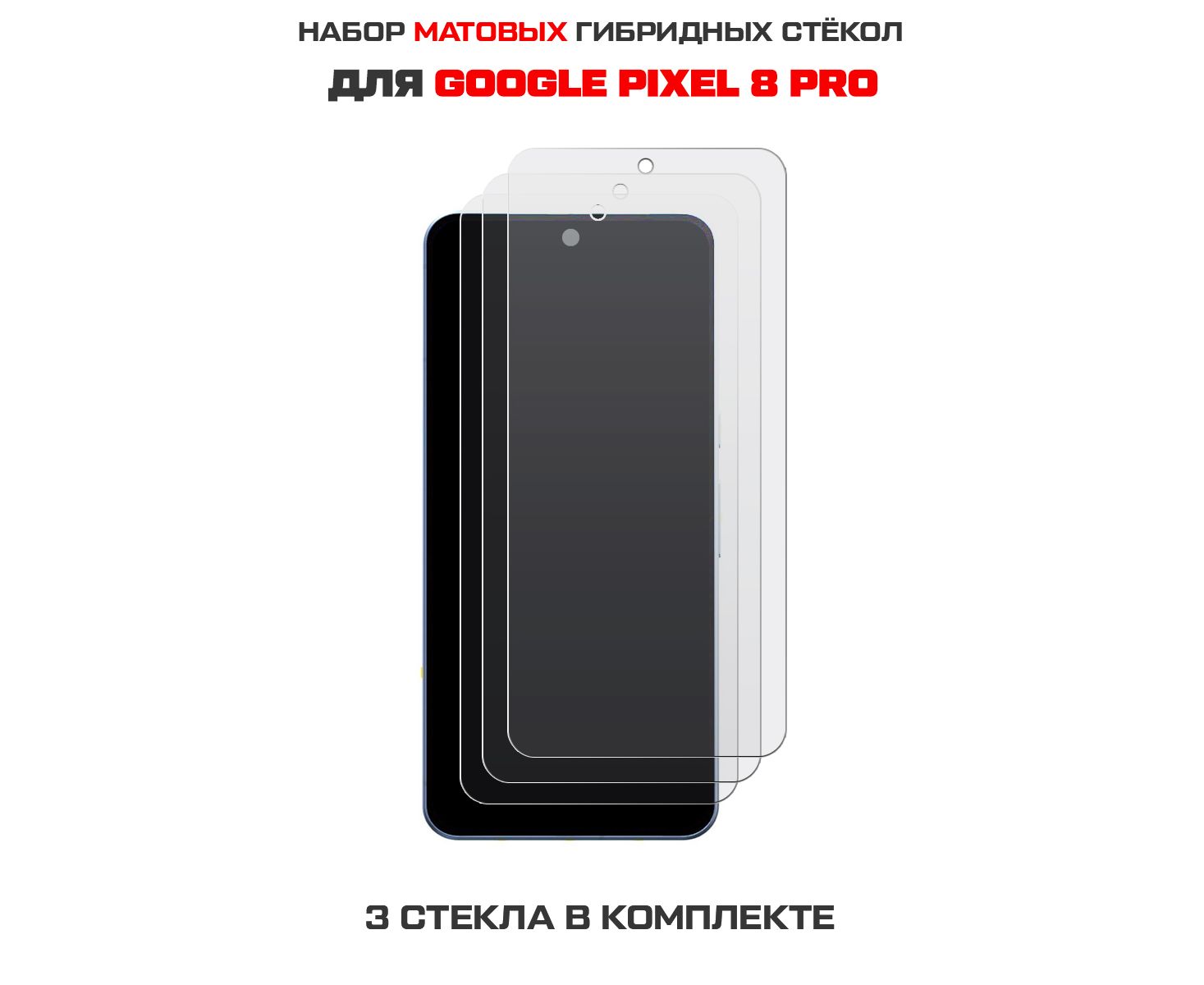 Комплект из 3-х защитных гибридных стекол МАТОВЫХ Krutoff для GOOGLE Pixel 8 Pro