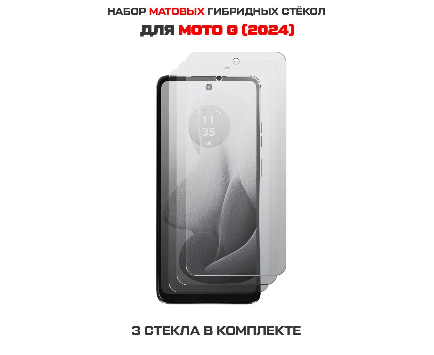 Комплект из 3-х защитных гибридных стекол МАТОВЫХ Krutoff для Moto G (2024)