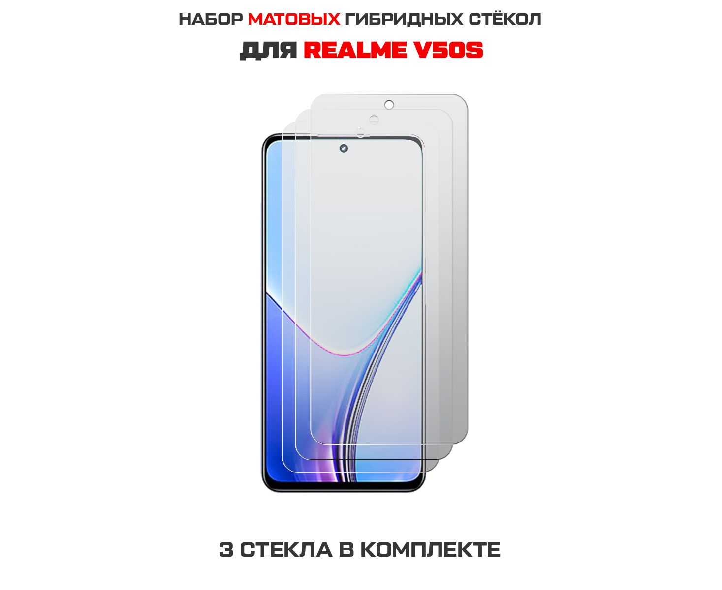 Комплект из 3-х защитных гибридных стекол МАТОВЫХ Krutoff для Realme V50s