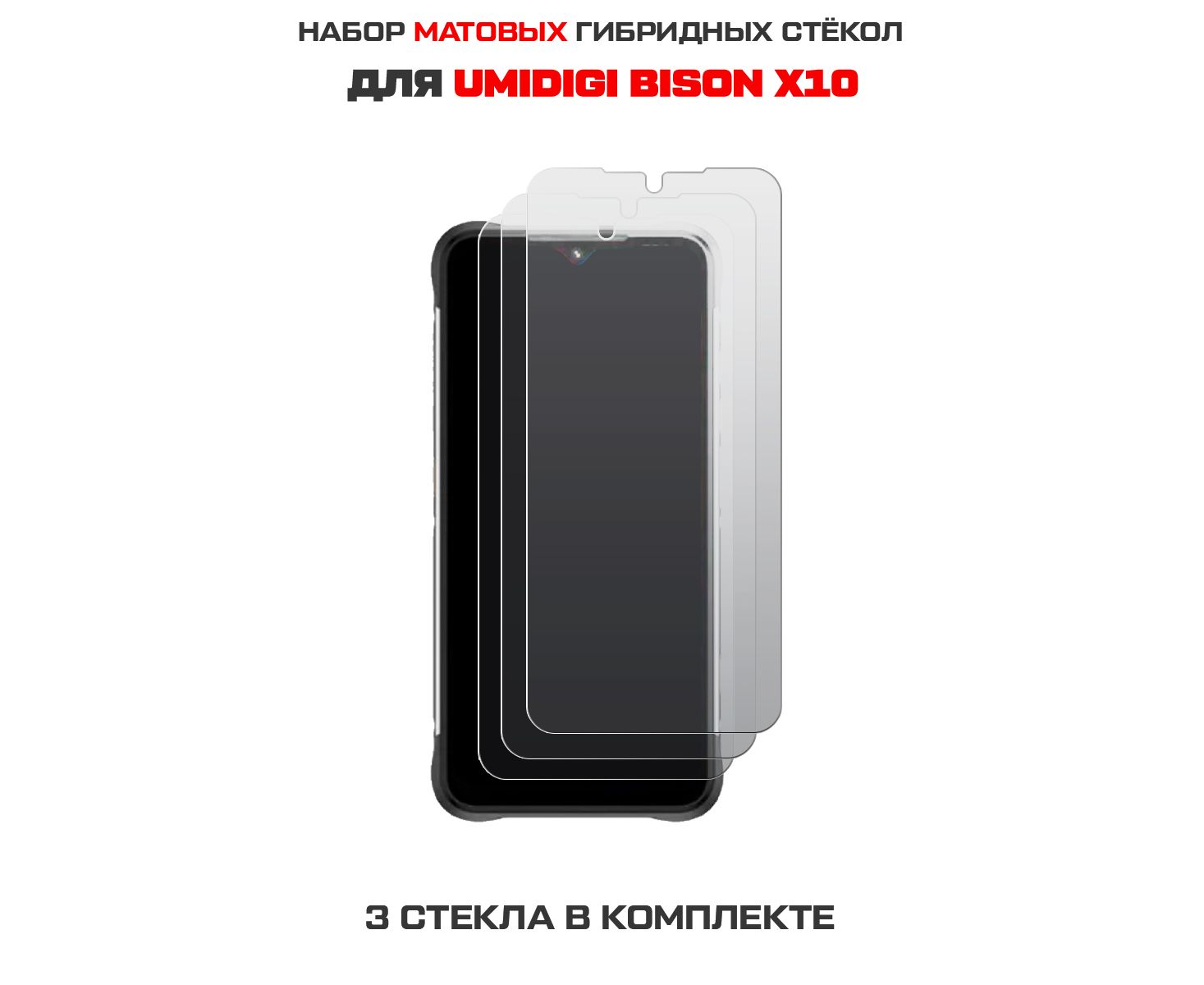 Комплект из 3-х защитных гибридных стекол МАТОВЫХ Krutoff для UMIDIGI BISON X10