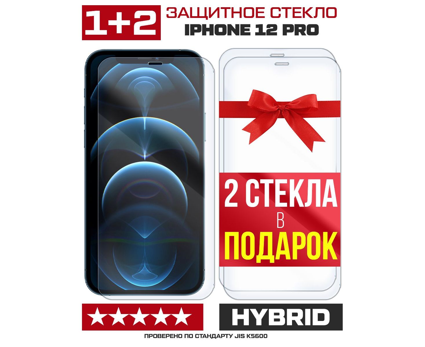 Комплект из 3-x защитных гибридных стекл для iPhone 12 Pro