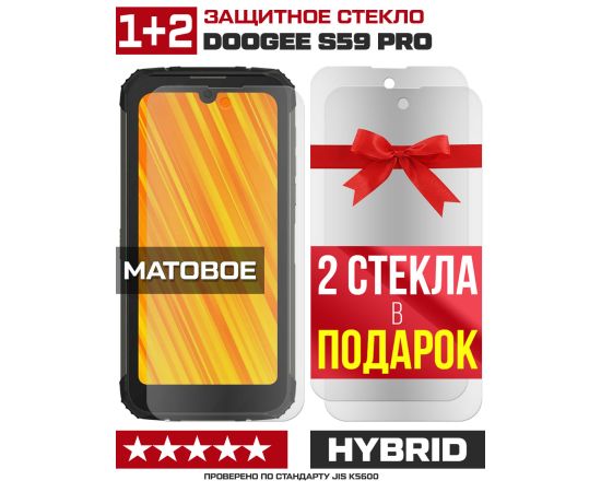 Комплект из 3-x защитных гибридных стекол МАТОВЫХ Krutoff для Doogee S59 Pro