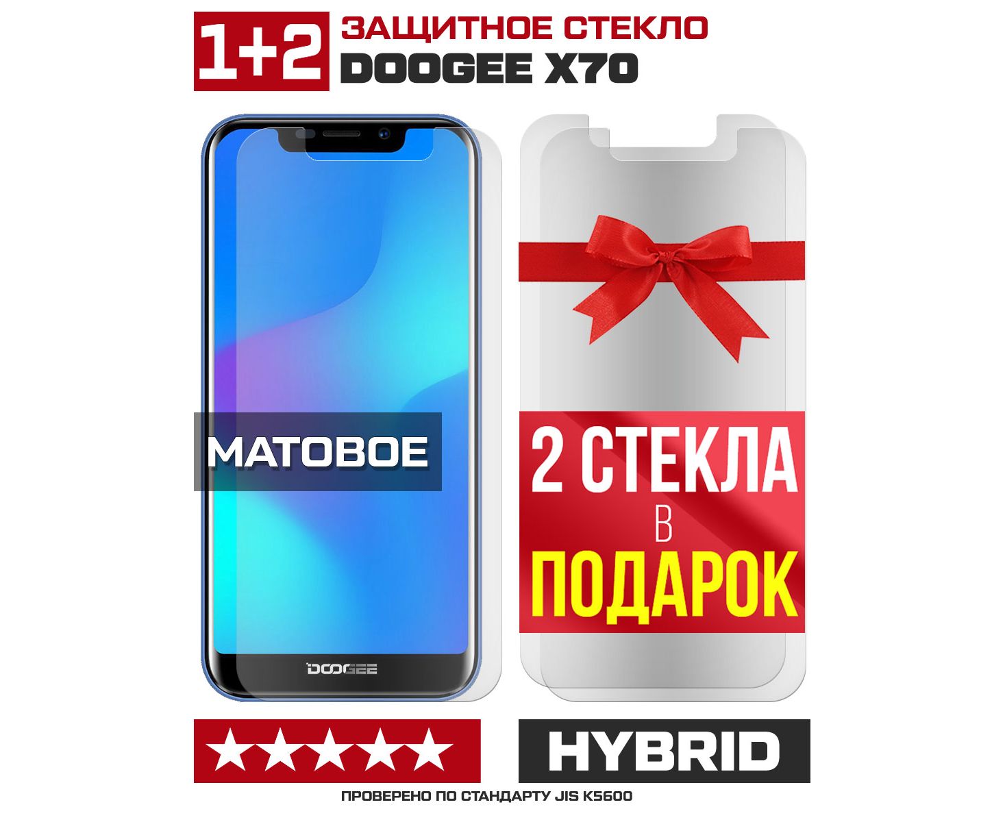 Комплект из 3-x защитных гибридных стекол МАТОВЫХ Krutoff для Doogee X70