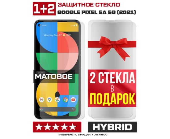 Комплект из 3-x защитных гибридных стекол МАТОВЫХ Krutoff для Google Pixel 5a 5G (2021)