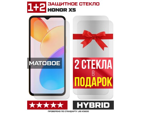 Комплект из 3-x защитных гибридных стекол МАТОВЫХ Krutoff для Honor X5