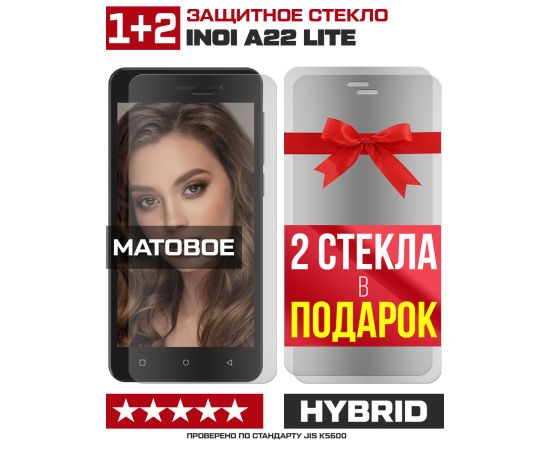 Комплект из 3-x защитных гибридных стекол МАТОВЫХ Krutoff для INOI A22 Lite
