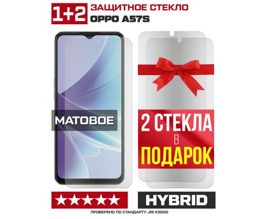 Комплект из 3-x защитных гибридных стекол МАТОВЫХ Krutoff для Oppo A57s