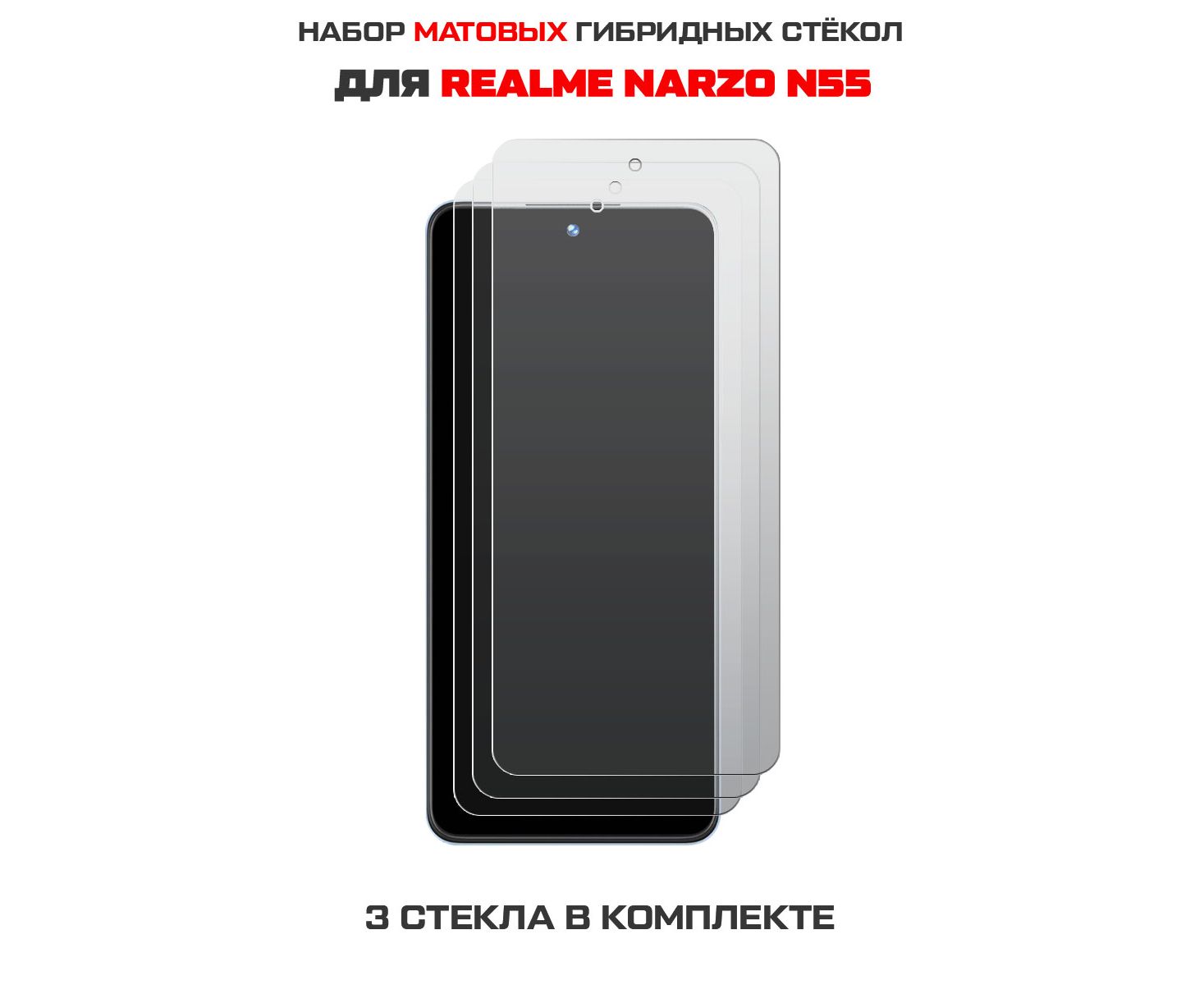 Комплект из 3-x защитных гибридных стекол Матовых Krutoff для Realme Narzo N55