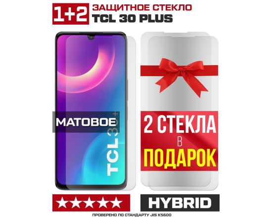 Комплект из 3-x защитных гибридных стекол МАТОВЫХ Krutoff для TCL 30 Plus
