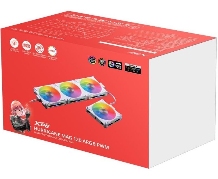 Комплект вентиляторов 4шт XPG HURRICANE MAG 120 ARGB PWM (прямой и реверсный режим) white RET
