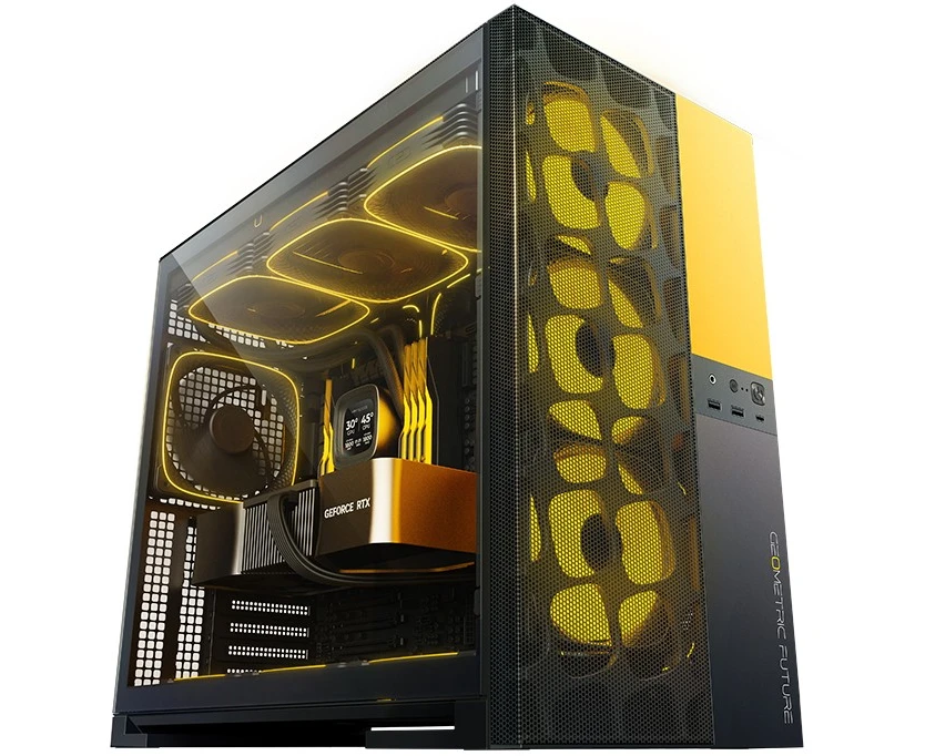 Корпус Geometric Future Model 5 Vent Black Yellow with fans (1AM5VTBY01100) / mid tower, E-ATX / 5x140mm ARGB fans