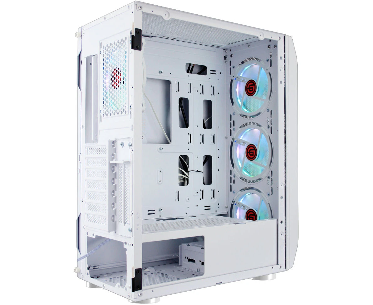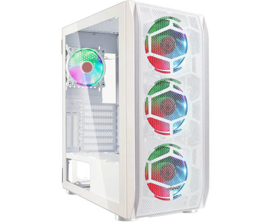Корпус Ginzzu GL 390 боковая дверца закаленное стекло на петлях на магнитах, controller CRC10, 4* 12R6W Fan 12см RGB белый
