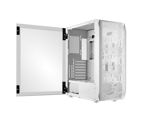 Корпус Ginzzu GL185 White боковая дверца закаленное стекло на петлях на магнитах