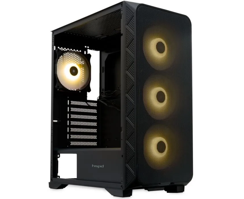 Корпус HSPD M521 (M521-TGBK-ARGB), Mesh Mid Tower, Black, slide TG, 0.45 SPCC, 4x120mm ARGB ATX