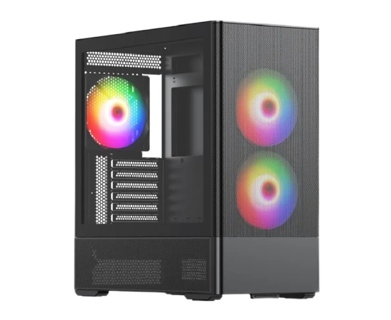 Корпус HSPD M712 (M712-TGBK-ARGB) без БП, Mesh Midi- Tower, Black, TG, 0.6 SPCC, 3x140mm ARGB, E-ATX, ATX, mITX, 175/410/160mm, 2x2.5"