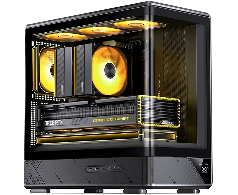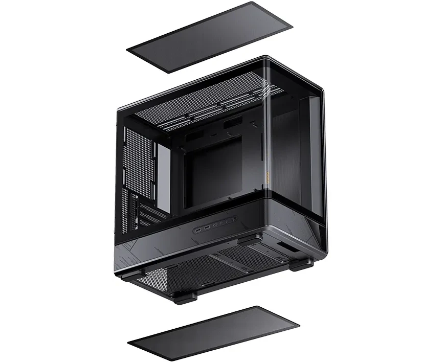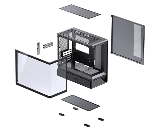 Корпус JONSBO D200 Black без БП, бок. пан. из закал. стекла (панорама), mini-ITX, micro-ATX, черный
