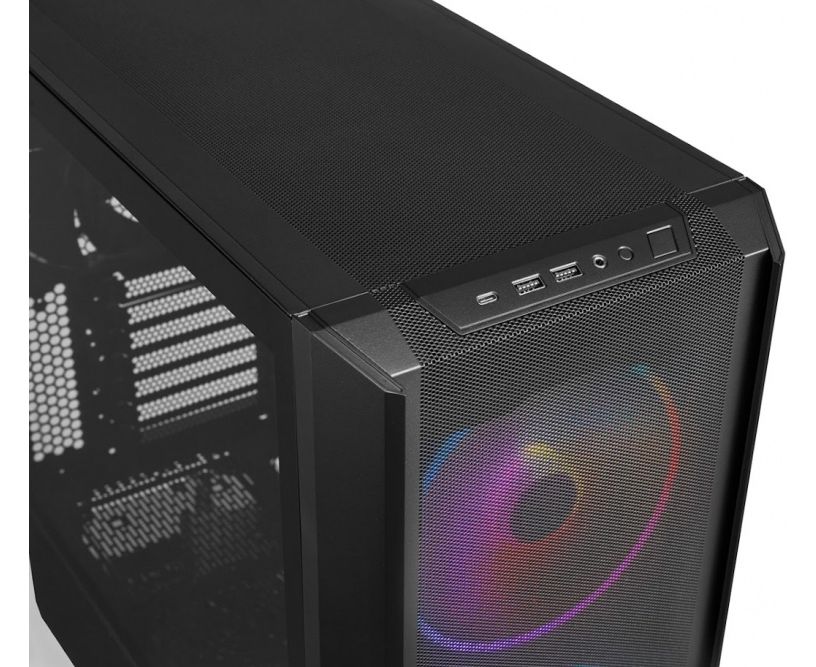 Разъемы на лицевой панели:2x USB 3.0, разъем для наушников, разъем для микрофона, кнопка Reset, кнопка Power, 1x USB Type C