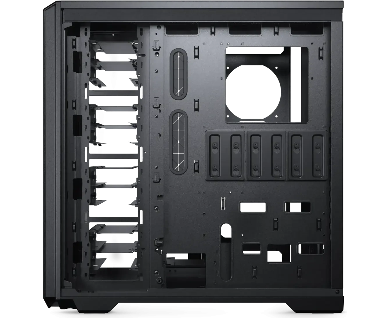 позиционирование крепления вентиляторов между отсеком материнской платы и корзинами с HDD можно изменить на боковую стенку