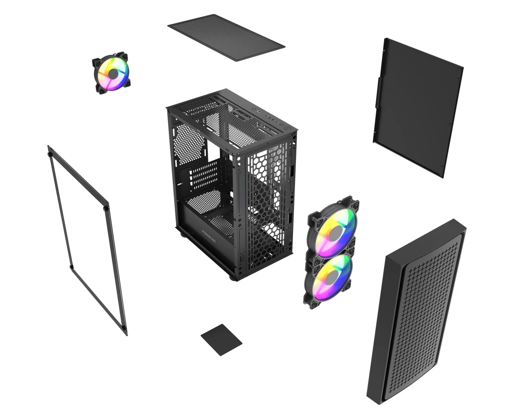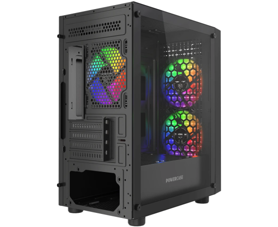 Корпус Powercase Mistral Micro EM20 (CMMEM20B-L3), Tempered Glass, 2x140mm + 1х120mm FRGB fan, чёрный, mATX
