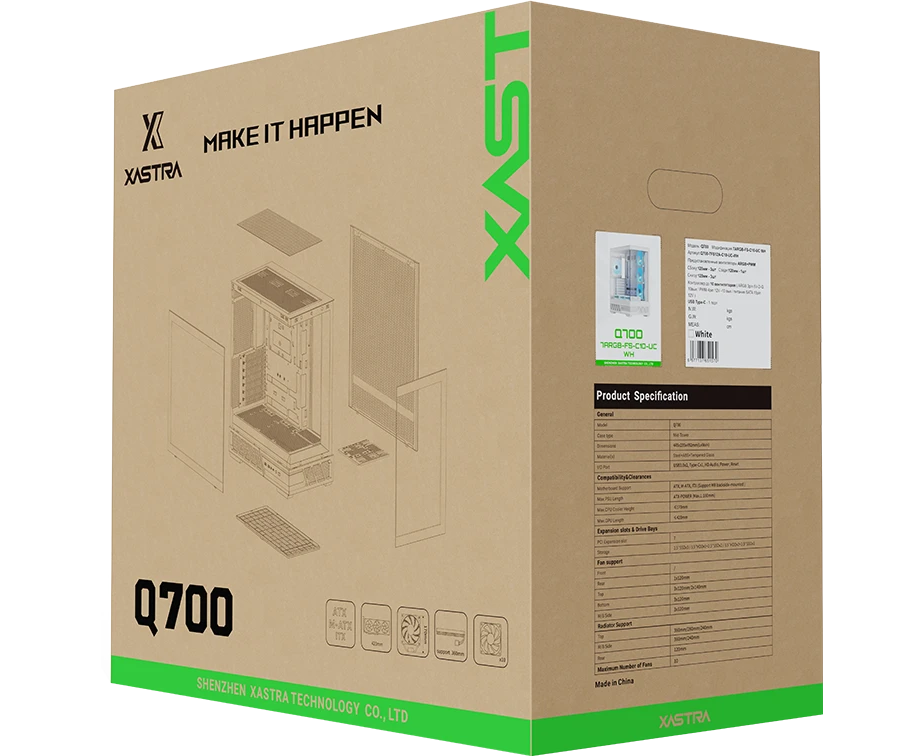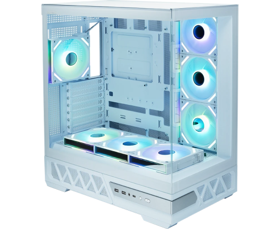 Корпус XASTRA Q700 7ARGB-FS-C10-UC White (Q700-7FS12A-C10-UC-WH)ATX/Aquarium/Screewless/7x120mm ARGB PWM DaisyChain FS fans/Argb+PWM HUB 10port/Type C