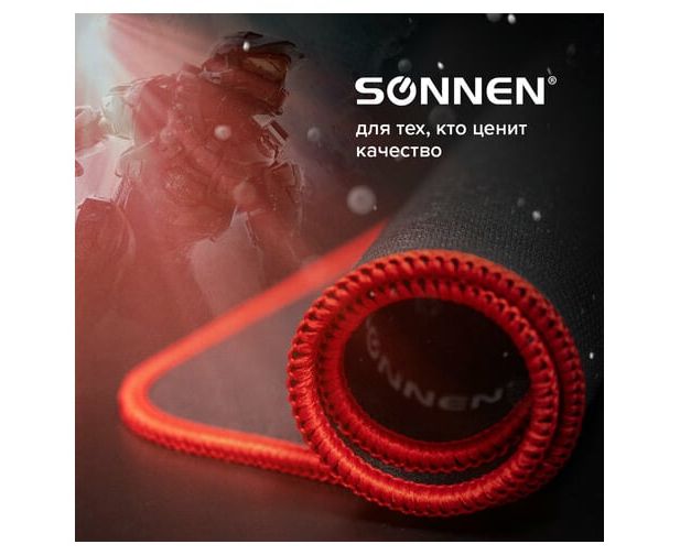 Игровой коврик для мыши SONNEN "CYBER OUTLAW" подходит для оптических и лазерных мышей с любой чувствительностью и любым типом сенсора, также обладает устойчивым сцеплением с поверхностью стола.