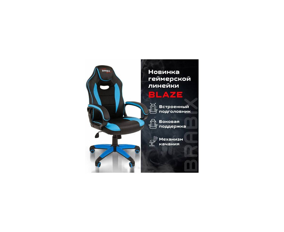 Кресло игровое BRABIX Blaze GM-162 (532578) TW/экокожа, черное/голубое