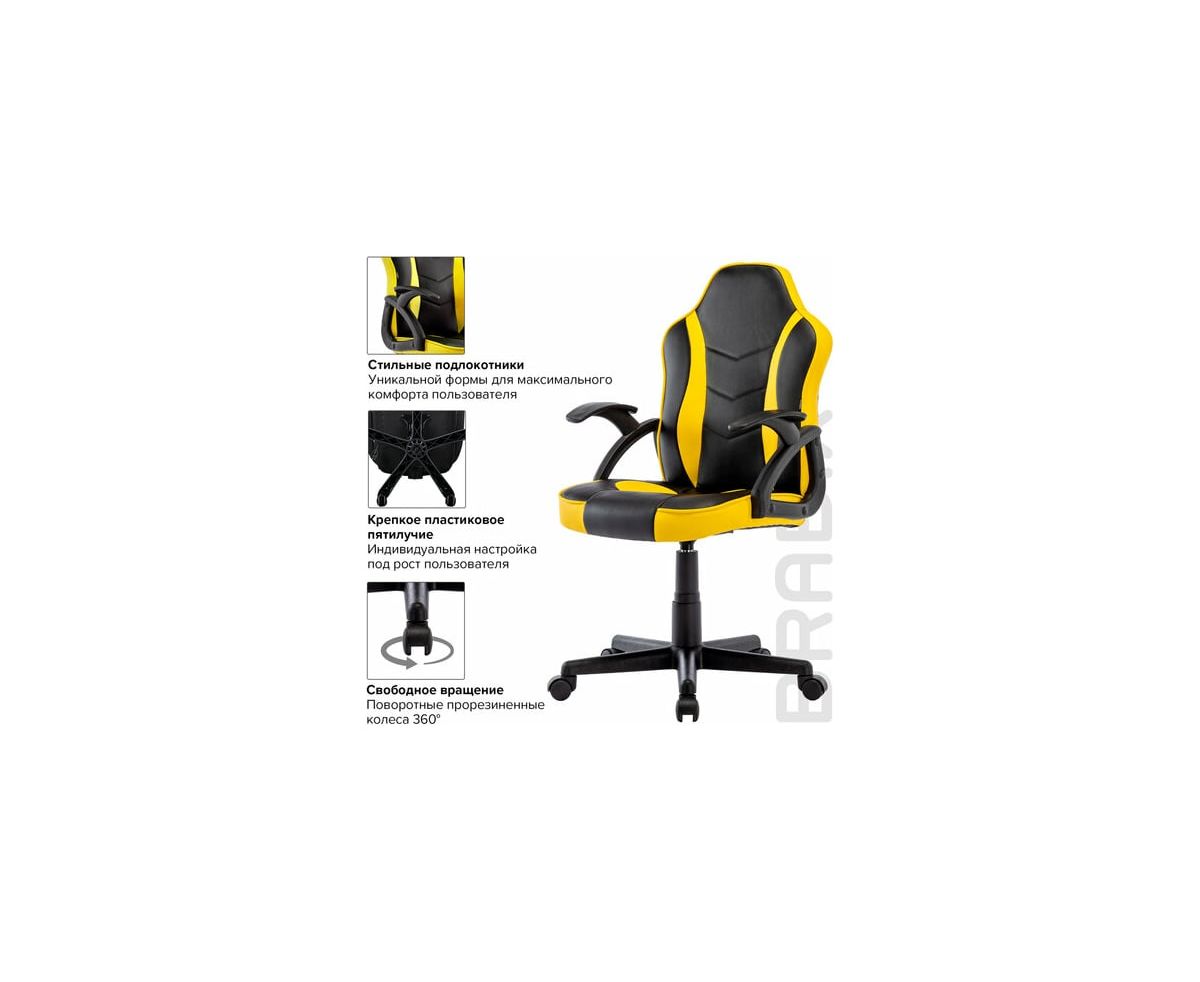 Компьютерное кресло BRABIX Shark GM-203, экокожа, черное/желтое 532514 предназначено для работы за компьютером.