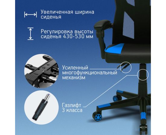 Кресло игровое OKLICK 121G 1987637 черный/синий сиденье черный/синий искусст.кожа/сетка с подголов. крестов. пластик черный