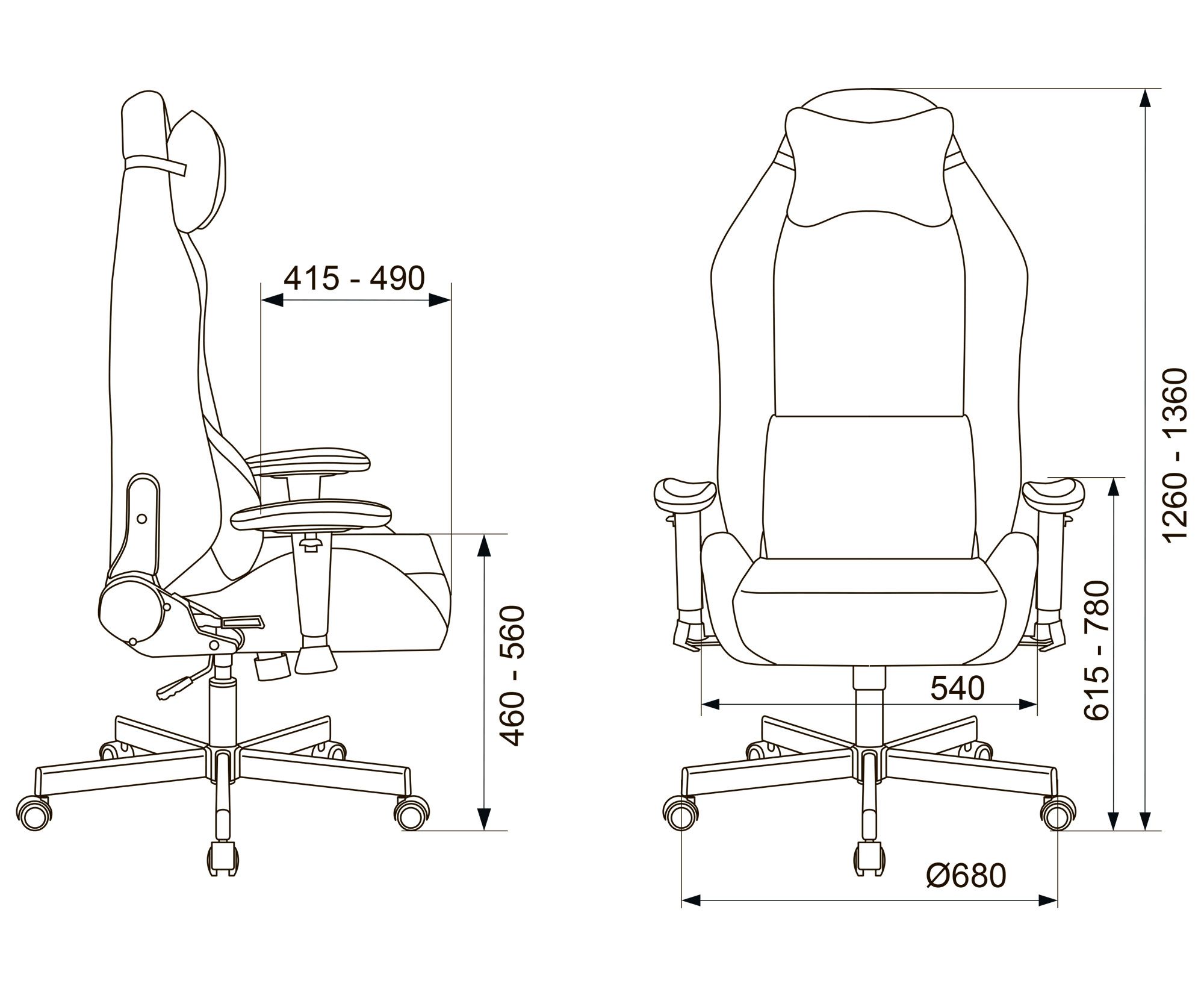Высота с подлокотниками MIN