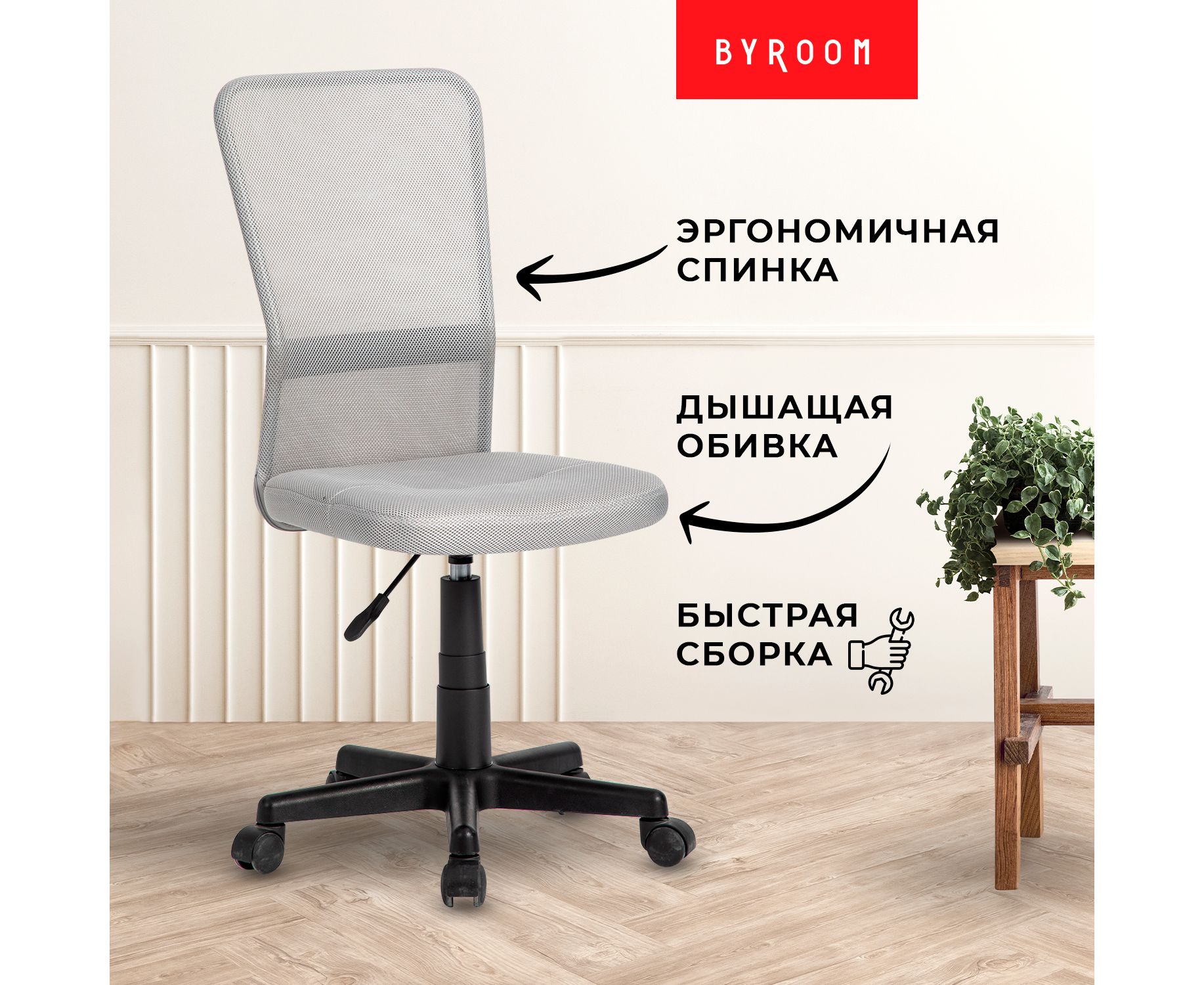 Кресло офисное BYROOM Office Fix (HS-8055-G) без подлокотников Grey