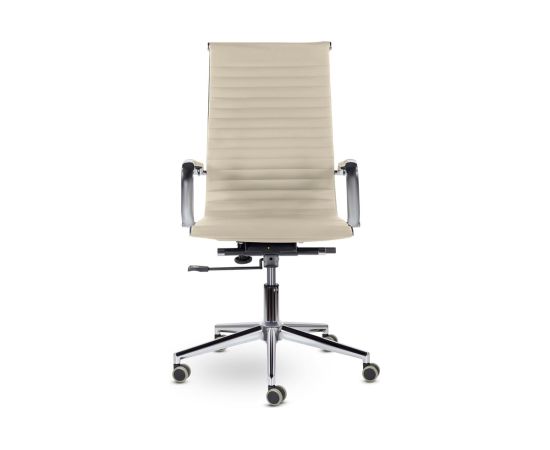 - Кресло изготовлено из высококачественной экокожи "santorini" бежевого цвета, которая выглядит не только элегантно, но и обеспечивает невероятный комфорт благодаря мягкой и приятной на ощупь поверхности