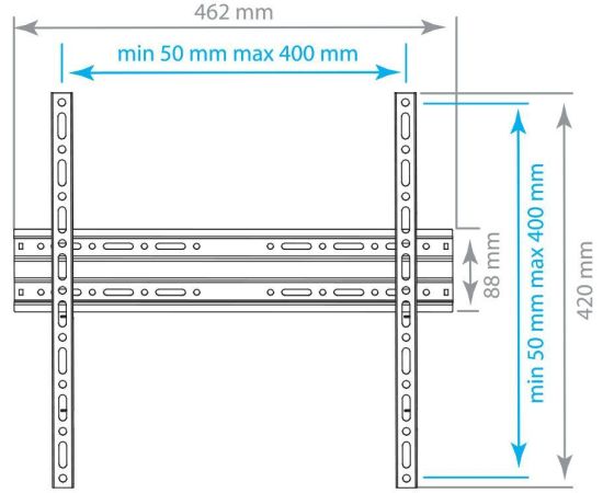 Описание Фиксированный кронштейн для телевизоров с диагональю 22-65 дюймов, весом до 55 кг. Расстояние от стены — 20 мм. Max VESA 400*400.