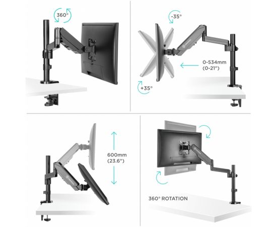 Пользовался им несколько часов в итоге крепление вместе с монитором проломило столешницу из IKEA после очередной попытки выставить монитор в нужное положение. И на этом мучения закончились, спасибо IKEA что избавила от страданий и просто сломалась.