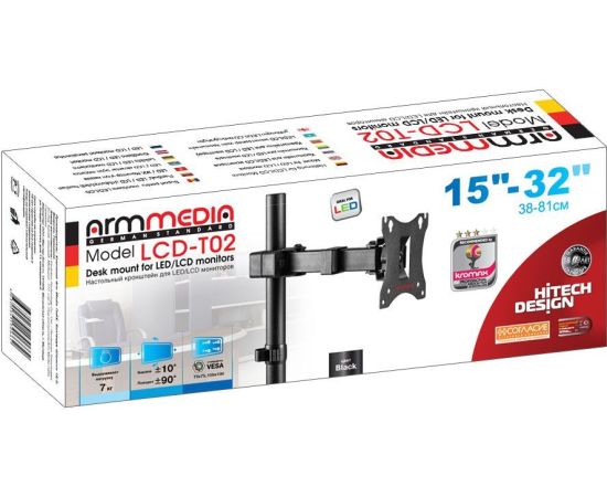 Кронштейн для мониторов Arm Media LCD-T02 черный 15"-32" макс.7кг настольный поворот и наклон