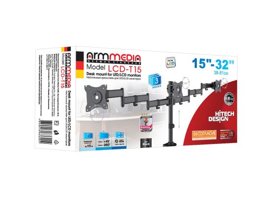 Кронштейн для мониторов Arm Media LCD-T15 черный 15"-32" макс.30кг настольный поворот и наклон верт.перемещ.