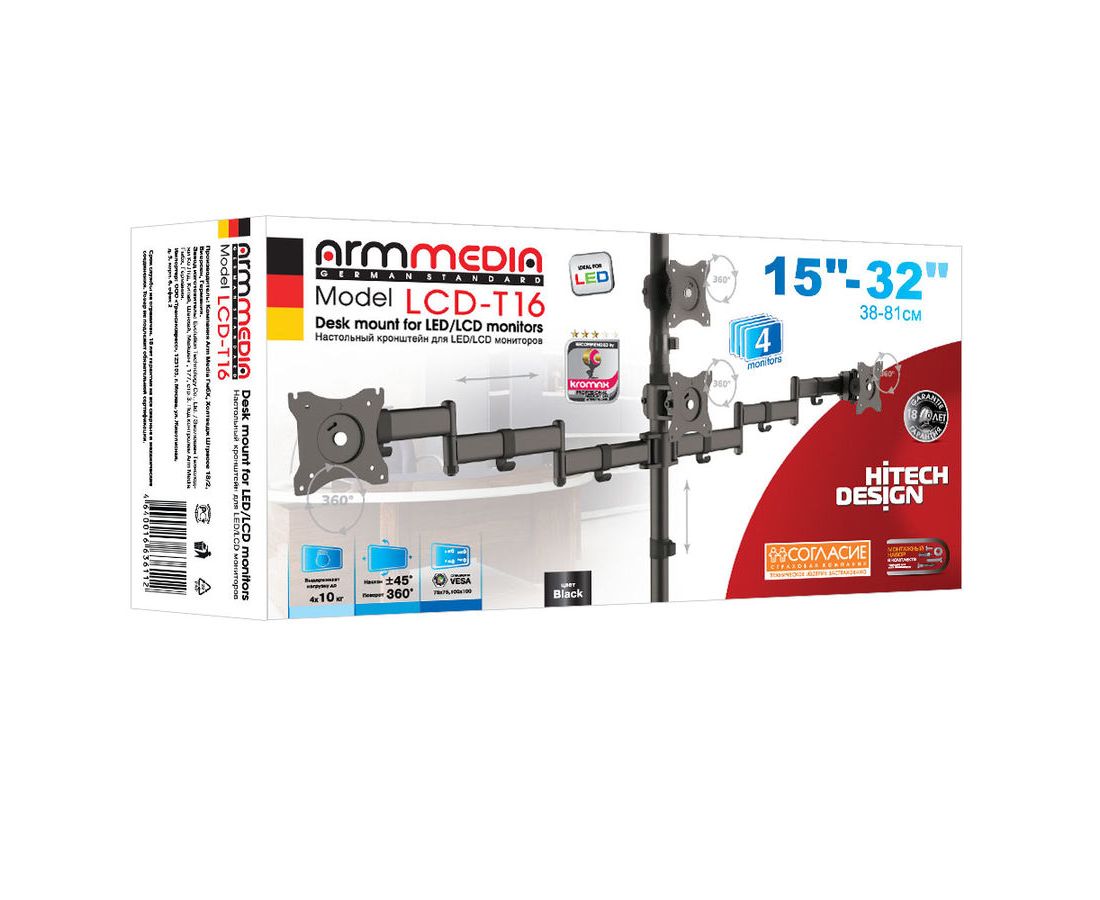 Кронштейн для мониторов Arm Media LCD-T16 черный 15"-32" макс.40кг настольный поворот и наклон верт.перемещ.