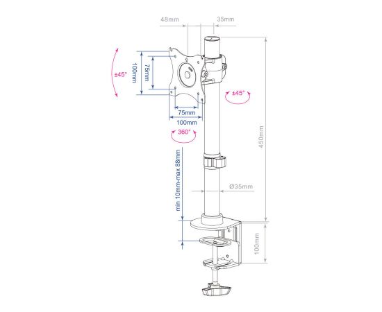 Угол наклона -45/+45 °
