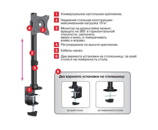 Кронштейн для мониторов Arm Media LCD-T41 черный 15"-32" макс.10кг настольный поворот и наклон верт.перемещ.