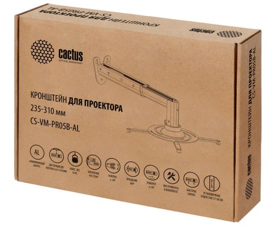 Кронштейн для проектора Cactus CS-VM-PR05B-AL серебристый макс.23кг настенный и потолочный поворот и наклон