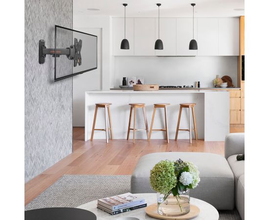 Надежная стальная конструкция, Универсальный - телевизор на кронштейне можно наклонить, повернуть и сдвинуть к стене, Легкий монтаж телевизора - благодаря наличию съемной монтажной пластины, Кабель-канал, Вращение экрана +5° -90°
