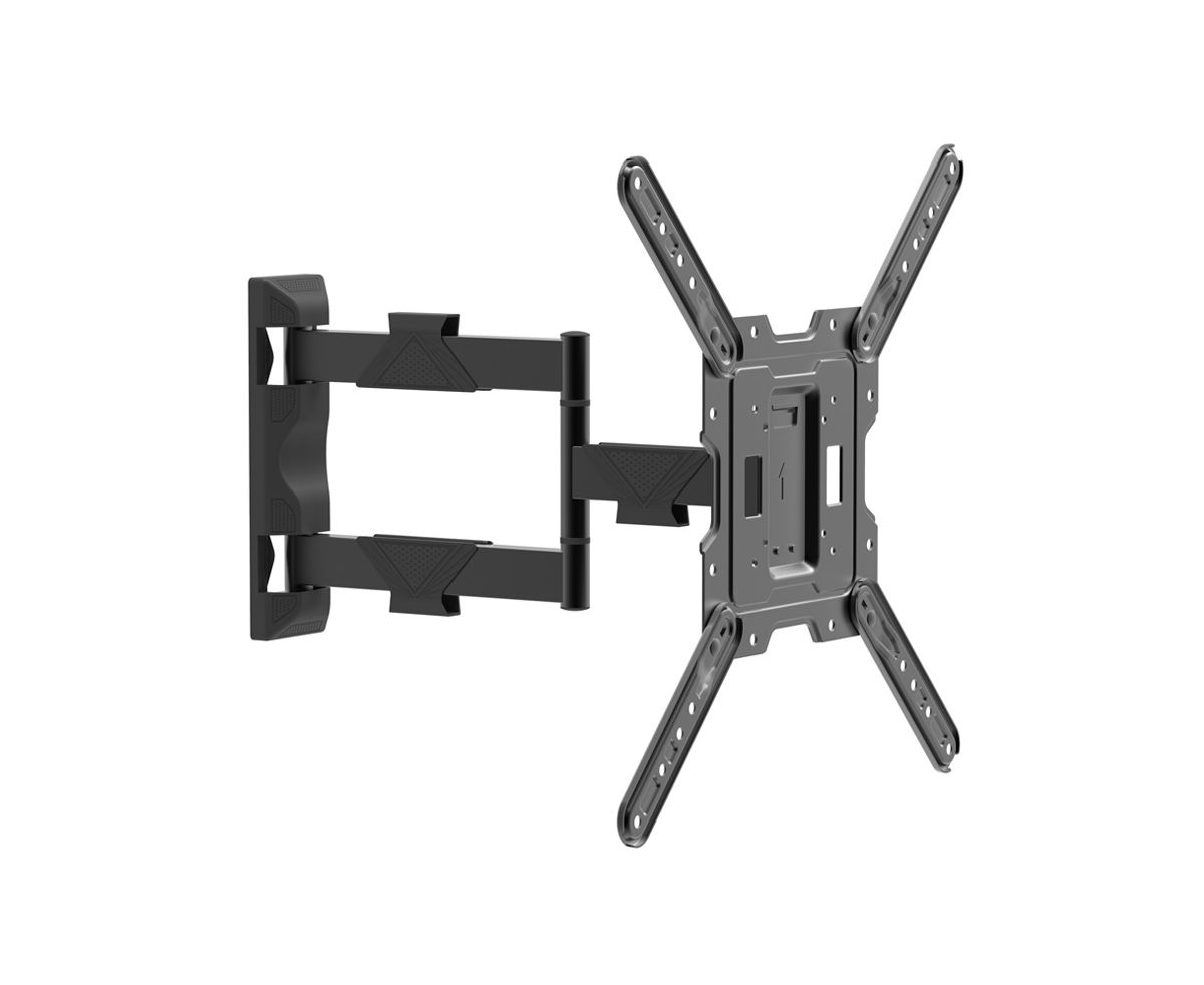 Наклонно-поворотный ТВ кронштейн с увеличенным выносом Harper TVFW-65 поддерживает стандарты VESA: 75x75, 100x100, 200x100, 200x200, 300x300, 400x400 мм, совместим с диагоналями телевизоров от 17 до 65 дюймов и выдерживает весовую нагрузку до 35 кг. Настенный телевизионный кронштейн Harper TVF-65 позволяет изменять угол наклона ТВ от –15° до +5°, угол наклона в горизонтальной плоскости ± 4°, поворачивать панель влево/вправо на 180° и отодвигать телевизор от стены на расстояние до 423 мм (в сложенном состоянии минимальное расстояние до стены 62 мм), а раздельная конструкция, состоящая из настенной пластины и передней панели с крепёжными направляющими, обеспечивает простую сборку кронштейна вместе с установленным на неё телевизором. В комплект поставки Harper TVFW-65 входят крепежные принадлежности: анкеры и дюбели, подходящие для монтажа ТВ кронштейна на разные поверхности: бетонные и кирпичные стены, деревянные плиты и доски (для других типов оснований необходимо приобрести специализированный крепёж). Для удобства использования кронштейн Harper TVFW-65 оборудован держателями кабелей.