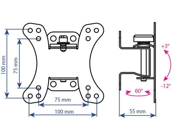 Описание: Легкий монтаж при помощи съемной монтажной пластины. Надежная стальная конструкция. Универсальный телевизор на кронштейне можно наклонить, повернуть и сдвинуть к стене. Регулировка угла наклона без использования инструментов.