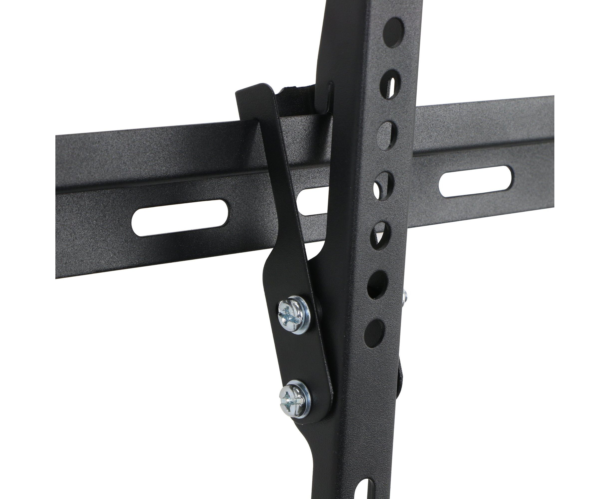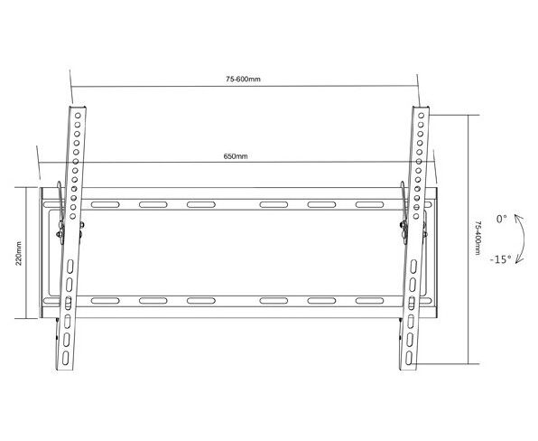 Надежный кронштейн с функцией наклона. Поддержка VESA 600х400, что позволяет устанавливать телевизоры до 70". Крепкая стальная конструкция держит вес до 55кг.
