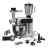 насадка для смешивания, насадка-венчик для взбивания, насадка-крюк для замешивания теста, насадка-мясорубка (+ насадки для кеббе и колбасок), насадка-стационарный блендер, насадка-овощерезка (2 тёрки и шинковка)