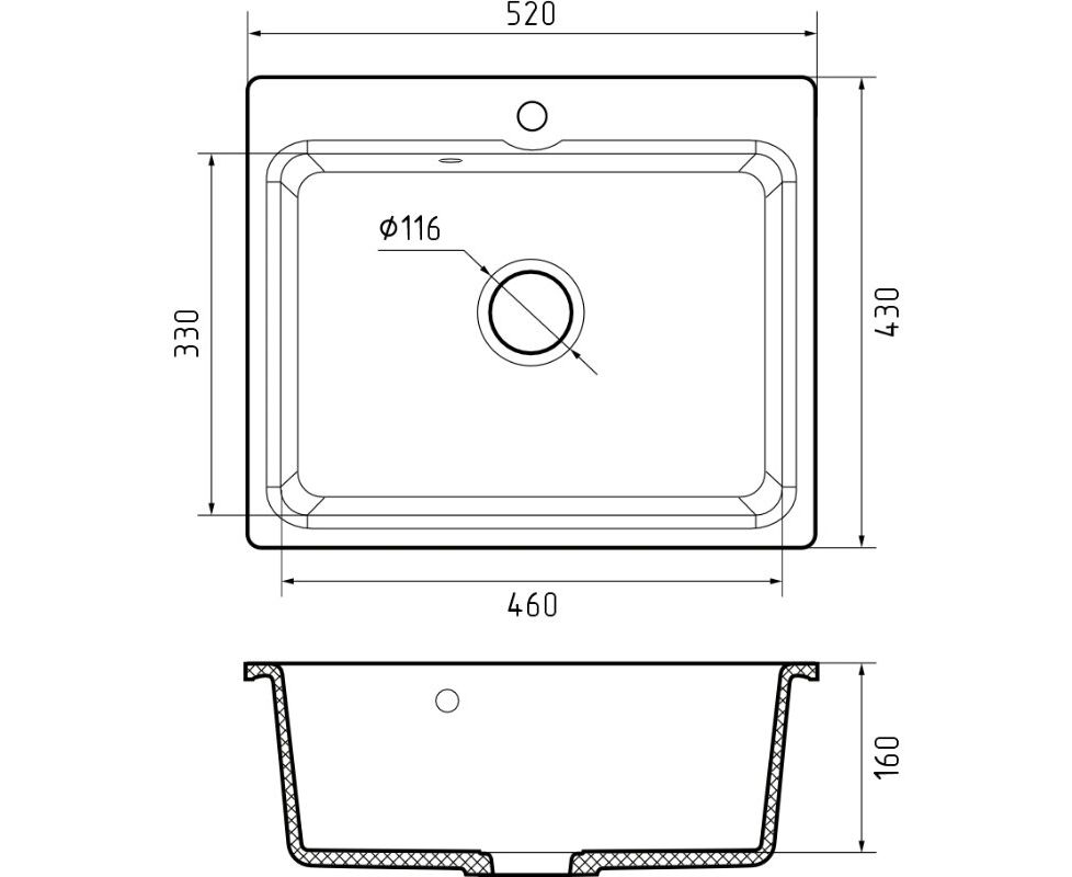Кухонная мойка GranFest Smart 520 GF-Smart 520 мрамор, черный