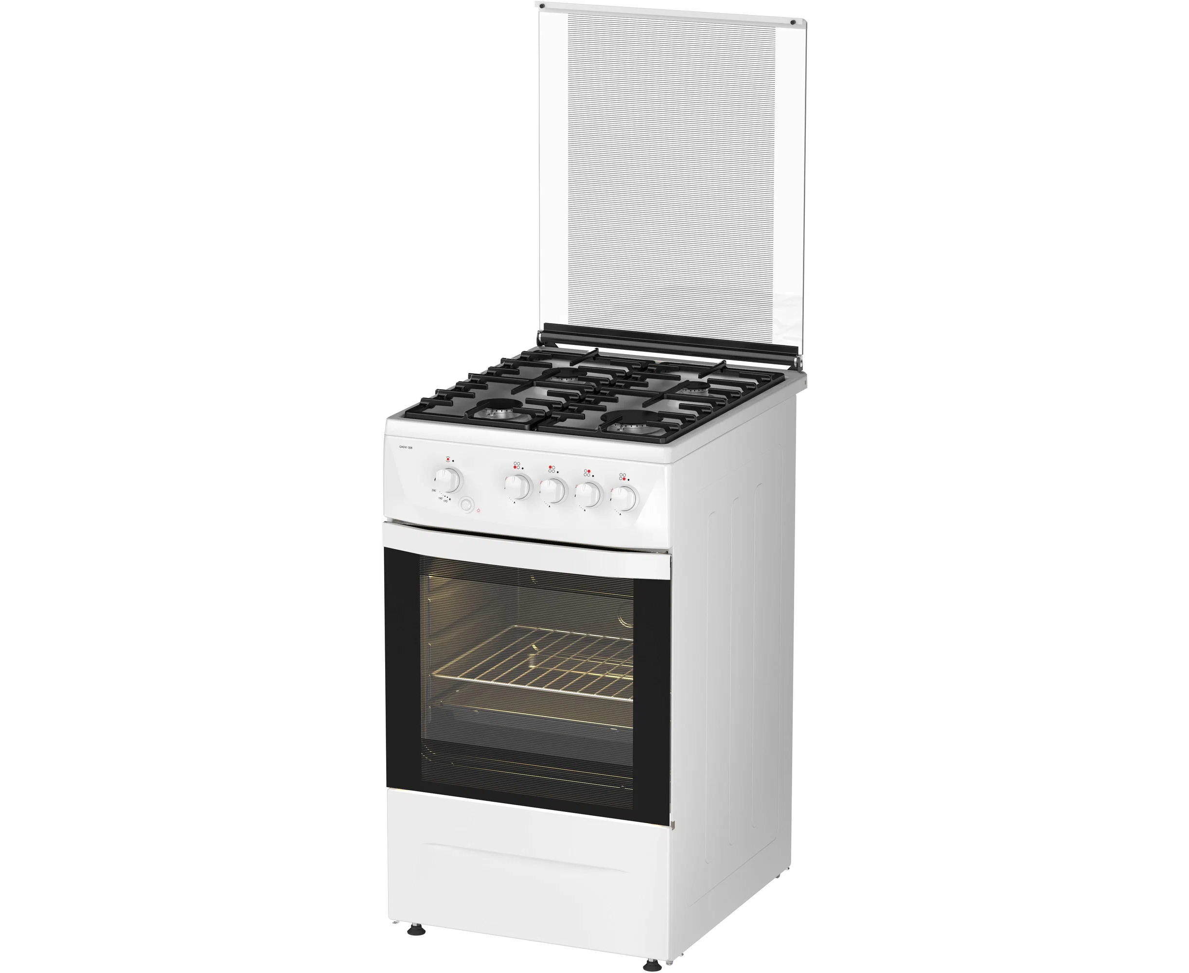 подсветка духовки, чугунные решетки, ящик для посуды, стеклянная крышка