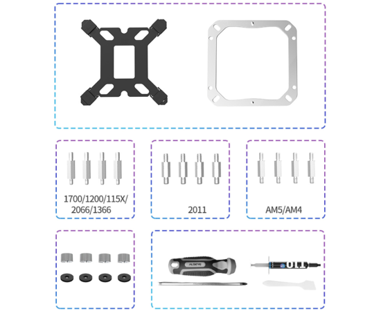 LGA 115x/1200, LGA 1356, 1366, LGA 1700, LGA 2011, 2011-3, LGA 2066, AM4, AM5