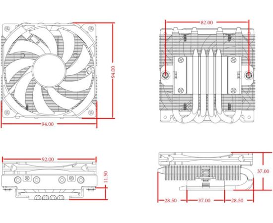 Кулер ID-COOLING IS-37-XT Black LGA1700/1200/115X/AM5/AM4 низкопрофильный высота 37mm (TDP 95W, PWM, 3 тепл.трубки прямого контакта, Fan 92m)